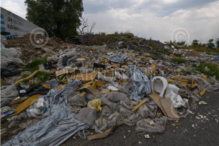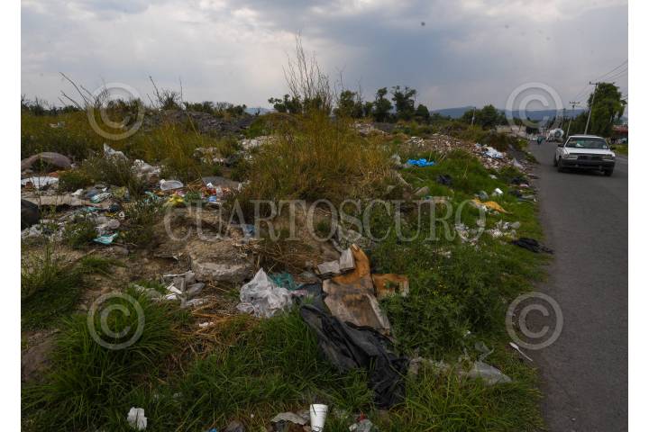 LERMA, ESTADO SE MÉXICO, 05JUNIO2024.- A un costado de la avenida Aldama en San Pedro Tultepec cerca de los humedales se ha convertido en un tiradero de escombro y basura, neumáticos y otros desperdicios. FOTO: CRISANTA ESPINOSA AGUILAR /CUARTOSCURO.COM