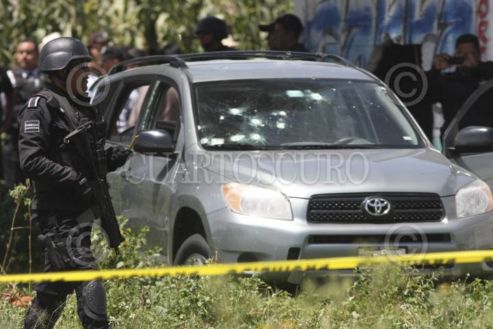 PUEBLA, PUEBLA., 21SEPTIEMBRE2011.- Tres heridos de gravedad fue el saldo de una balacera entre elementos de la policía ministerial que se enfrentaron contra unos sujetos que viajaban a bordo de una camioneta RAV4 que se dieron a la fuga después de asaltar a unas personas en la colonia La Loma Zavaleta. FOTO: FRANCISCO GUASCOCUARTOSCURO.COM