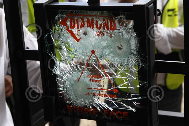 NOPALTEPEC, ESTADO DE MÉXICO, 09SEPTIEMBRE2014.- Se realizó una demostración de prueba balística para demostrar el desempeño de tecnologías especializadas en blindaje automotriz organizado por la Asociación Mexicana de Blindadores de Automotores. FOTO: RODOLFO ANGULO /CUARTOSCURO.COM