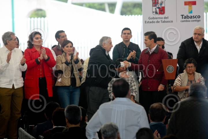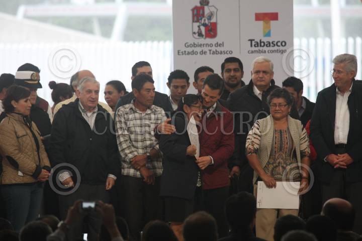 VILLAHERMOSA,TABASCO, 28ENERO2016.- Enrique Peña Nieto presidente de México en gira de trabajo por el estado de Tabasco inauguro y entrego la ampliación del boulevard y distribuidor vial La Pigua, así mismo del programa “Papelitos” dio títulos de propiedad y escrituras a chocos de distintos municipios. En la mencionada gira presidencial, Arturo Núñez Jiménez gobernador local le hizo mención que es urgente crear empleos y reforzar la seguridad social. FOTO: MARCO POLO GUZMÁN HERNÁNDEZ /CUARTOSCURO.COM