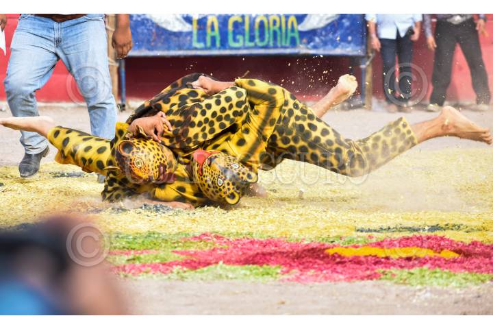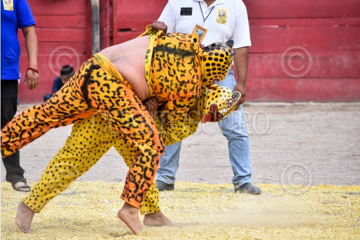 "Tigres" disputan un duelo con motivo de la festvidad del Porrazo.