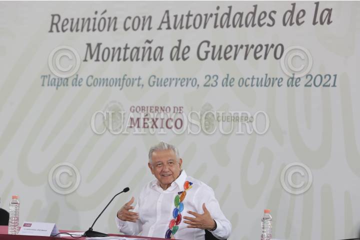 Andrés Manuel López Obrador, presidente de México Mexicanos presidió la Reunión con autoridades de La Montaña de Guerrero en el Instituto Tecnológico Superior de La Montaña, Tlapa de Comonfort, Guerrero.
