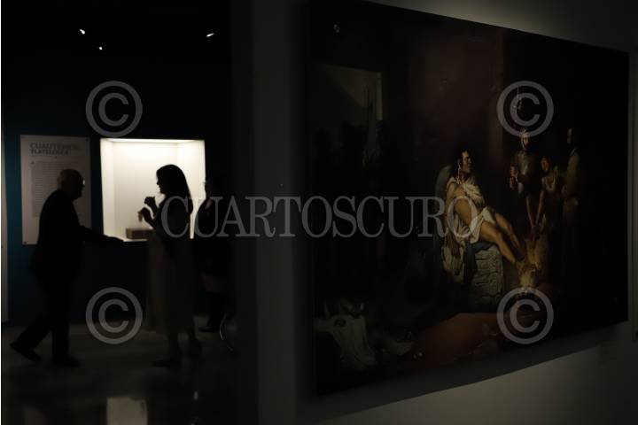 CIUDAD DE MÉXICO, 12DICIEMBRE2024.- La réplica de la pintura de Leonardo Izaguirre " El Suplicio de Cuauhtémoc" también es mostrada durante la exposición. FOTO: DANIEL AUGUSTO/ CUARTOSCURO.COM
