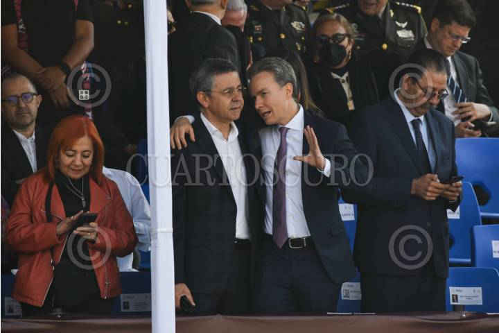 CIUDAD DE MÉXICO, 28FEBRERO2025.- César Yáñez, subsecretario de Gobernación, y Manuel Velasco, senador del PVEM, durante el Homenaje "Funerales de Estado en Conmemoración de los 500 años de la Ejecución de Cuauhtémoc", realizado en el zócalo capitalino. FOTO: MARIO JASSO/CUARTOSCURO.COM