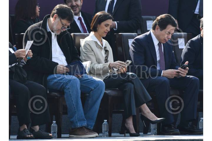 CIUDAD DE MÉXICO, 28FEBRERO2025.- Claudia Sheinbaum, presidenta de México, durante el homenaje "Funerales de Estado en Conmemoración de los 500 años de la Ejecución de Cuauhtémoc", realizado en el zócalo capitalino. La acompañan: Sergio Gutiérrez, presidente de la mesa directiva de la Cámara de Diputados; Rosa Icela Rodríguez, secretaria de Gobernación; Ricardo Trevilla Trejo, secretario de la Defensa Nacional; Raymundo Pedro Morales, secretario de Marina; Clara Brugada, jefa de Gobierno; Gerardo Fernández Noroña, presidente de la mesa directiva del Senado de la República; Luz Elena González, secretaria de Energía, y Mario Delgado, secretario de Educación Pública. FOTO: MARIO JASSO/CUARTOSCURO.COM