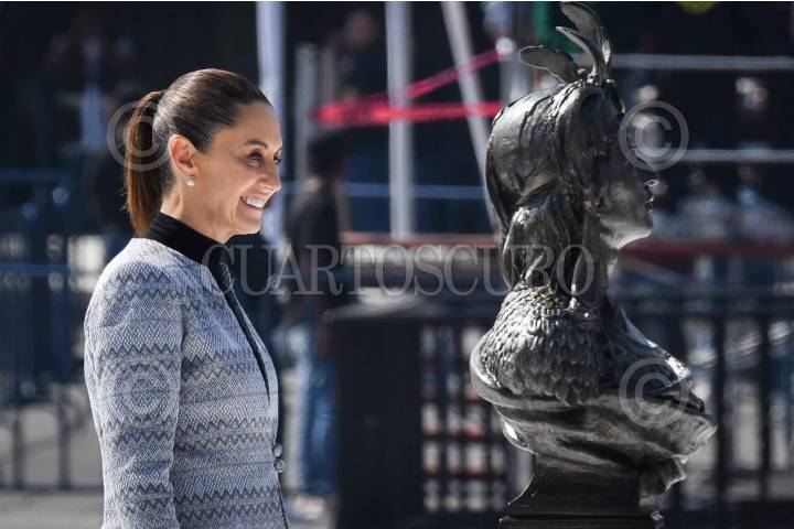 CIUDAD DE MÉXICO, 28FEBRERO2025.- Claudia Sheinbaum Pardo, presidenta de México, encabezó la ceremonia de “Funerales de Estado en Conmemoración de los 500 años de la Ejecución de Cuauhtémoc” en las inmediaciones del Zócalo capitalino. FOTO: GALO CAÑAS/CUARTOSCURO.COM