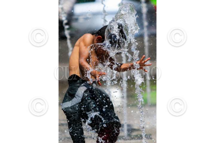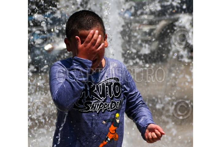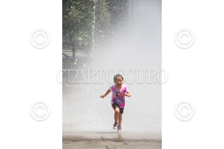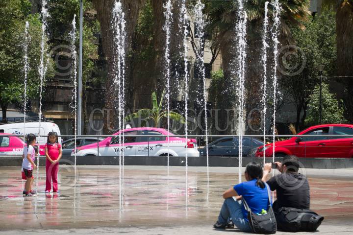 CIUDAD DE MÉXICO, 28MARZO2018.- Niños y jóvenes se divierten en la plaza Tlaxcoaque del centro histórico de la Ciudad. Aprovechan cualquier fuente para mitigar el calor que azota la capital Mexicana. FOTO: VICTORIA VALTIERRA /CUARTOSCURO.COM
