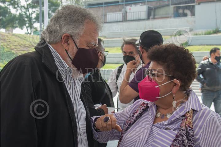 Alejandro Encinas, subsecretario de Derechos Humanos, Población y Migración, y Ernestina Godoy, fiscal General de Justicia de la Ciudad de México, durante la presentación del Proyecto "Tlaxcoaque: Sitio de Memoria".