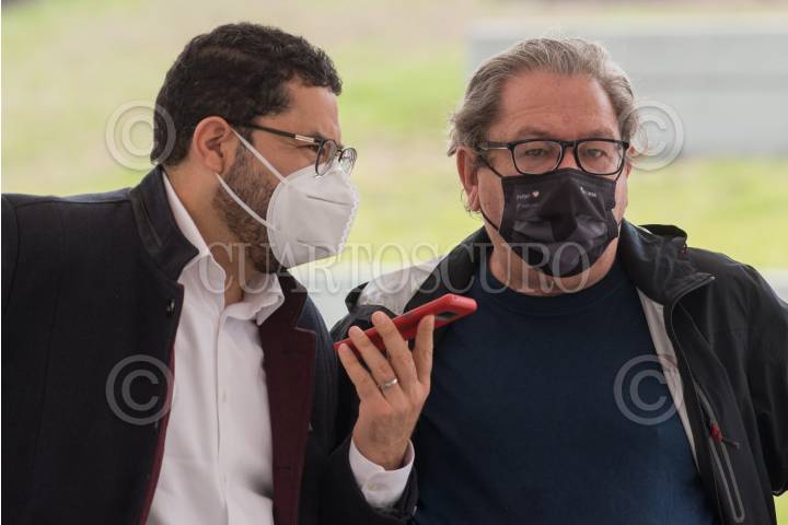 Martí Batres, secretario de gobierno de la Ciudad de México, y Alejandro Encinas, subsecretario de Derechos Humanos, Población y Migración, durante la presentación del Proyecto "Tlaxcoaque: Sitio de Memoria".