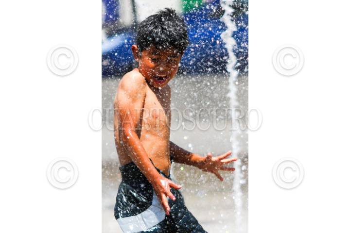 CIUDAD DE MÉXICO. 05ABRIL2024.- Niños que se encuentran de vacaciones, se refrescan en la fuente de la plaza de Tlaxcoaque en el Centro de la Ciudad. Bastante basura en las calles del primer cuadro Capitalino, debido a la hidratación de la gente. FOTO: VICTORIA VALTIERRA/CUARTOSCURO.COM