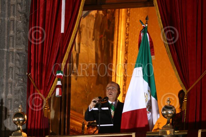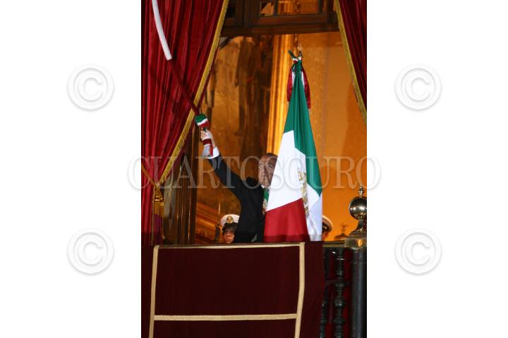 MÉXICO D.F.,15SEPTIEMBRE008.- Ante miles de mexicanos, el Presidente de México ondeo la bandera nacional y tocó la campana de Dolores desde el balcón central de Palacio Nacional, al conmemorar el 198 aniversario del inicio de la Independencia. FOTO: SÁSHENKA GUTIÉRREZ/CUARTOSCURO.COM