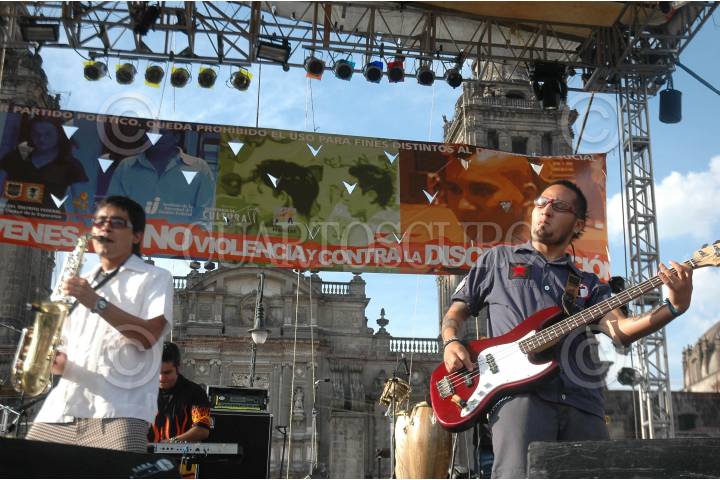 MEXICO, D.F. 13MAYO2006.- Se llevó a cabo el concierto Juvenil a la No Violencia y Discriminación en el Zocalo capitalino. Salón Victoria, fue uno de los grupos que tocaron en el evento. FOTO: Pedro Kristian López/CUARTOSCURO.COM