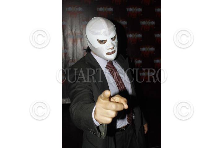 MÉXICO, D.F., 16MARZO2012.- El Hijo del Santo, durante la presentación de la función que se llevará a cabo el próximo 31 de Marzo, en la lucha estelar se jugarán la mascara el Hijo del Santo Villano IV contra el Hijo del Solitario y Ángel Blanco jr. FOTO: IVAN MENDEZ /CUARTOSCURO.COM