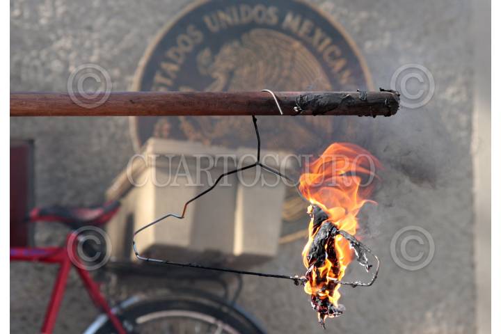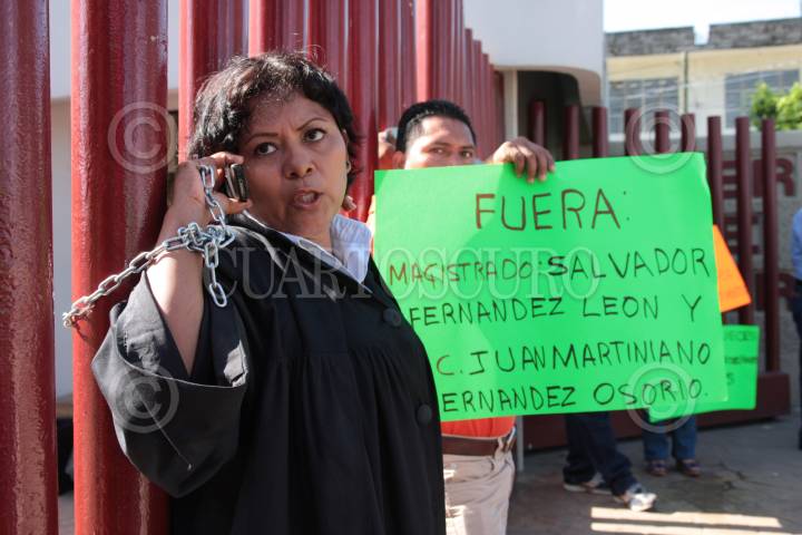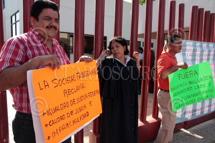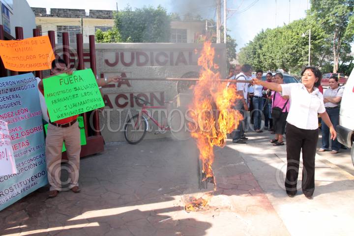 VILLAHERMOSA, TABASCO, 05OCTUBRE2009.- Como respuesta al repudio en la corrupción y trafico de influencias de los magistrados y jueces en el Palacio de Justicia Federal, la juez de primera instancia Juliana Quen Pérez se encadeno, entre protestas y denuncias se quitó la “Toga” y le prendió fuego. FOTO: MARCO POLO GUZMÁN HERNÁNDEZ/CUARTOSCURO.COM