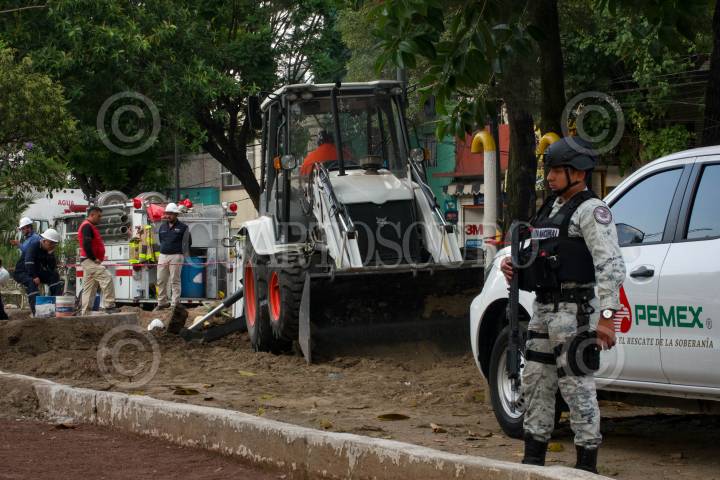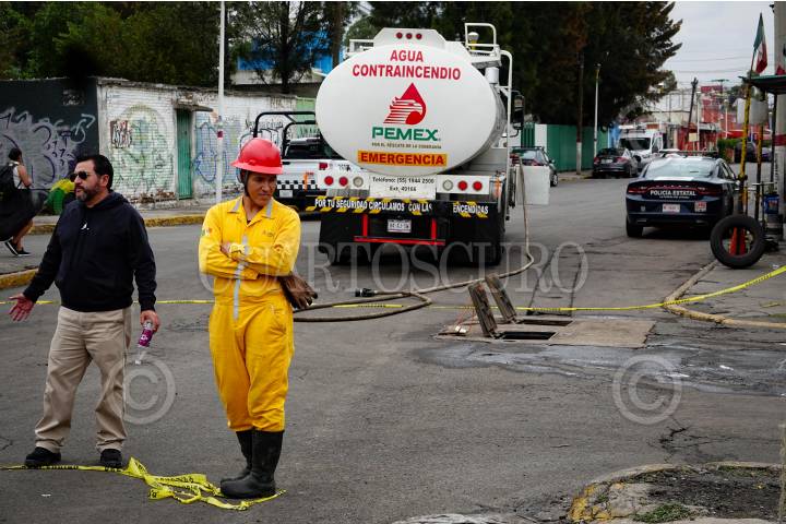 Autoridades resguardaron excavación de una supuesta toma clandestina en Azcapotzalco.