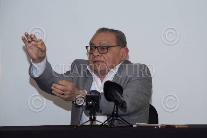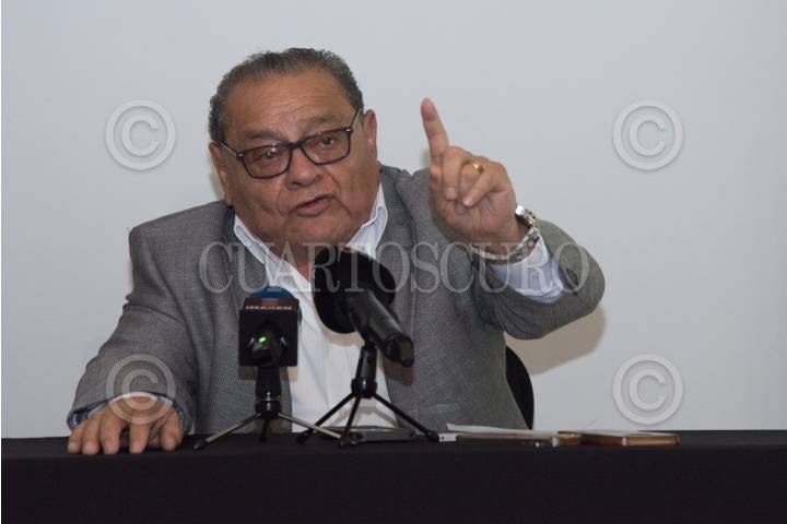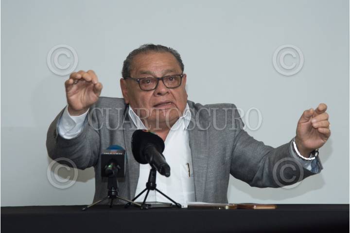 Mario Rubicel Ross García, miembro disidente del sindicato petrolero, y quien encabeza al Movimiento Nacional Petrolero, durante conferencia de prensa.