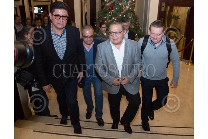CIUDAD DE MÉXICO, 17ABRIL2017.- Víctor Flores, líder del Sindicato de Trabajadores Ferrocarrileros de la República Mexicana (STFRM), durante la toma de nota y protesta de la directiva 2017 del Congreso del Trabajo, en la residencia oficial de Los Pinos. FOTO: MOISÉS PABLO /CUARTOSCURO.COM