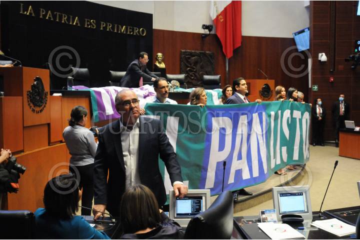 Julen Rementería junto a sus compañeros panistas, tomaron la tribuna del Senado.