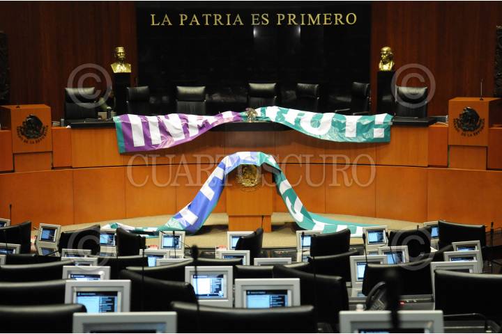 Las mantas utilizadas por el PAN para tomar la tribuna fueron dejadas sobre la Mesa Directiva del Senado.