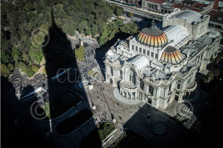 Sombra de la torre Latinoamericana a un costado del Palacio de Bellas Artes.