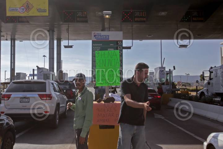 GUADALAJARA, JALISCO. 03ENERO2017.- Transportistas y vecinos del poblado de Zapotlanejo mantienen tomada la caseta de cobro de La Joya, de la autopista Guadalajara-Zapotlanejo, esto en repudio al presidente de la republica, Enrique Peña Nieto por el alza de los combustibles en México, hasta el momento la protesta se realiza en calma y los cobros de peaje a los automovilistas no se están realizando. FOTO : FERNANDO CARRANZA GARCIA / CUARTOSCURO.COM
