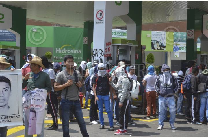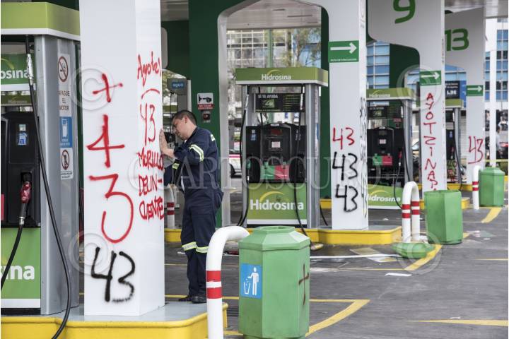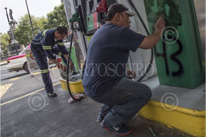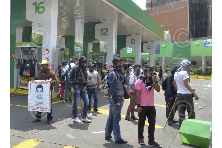 CIUDAD DE MÉXICO, 11MARZO2017.- Aspectos de la gasolinera Hidrosina ubicada en Paseo de la Reforma e Insurgentes, la cual fue tomada por familiares de los 43 normalistas desaparecidos de Ayotzinapa, y estudiantes de la Normal Rural Raúl Isidro Burgos, los cuales regalaron combustible a los automovilistas. FOTO: TERCERO DÍAZ /CUARTOSCURO.COM