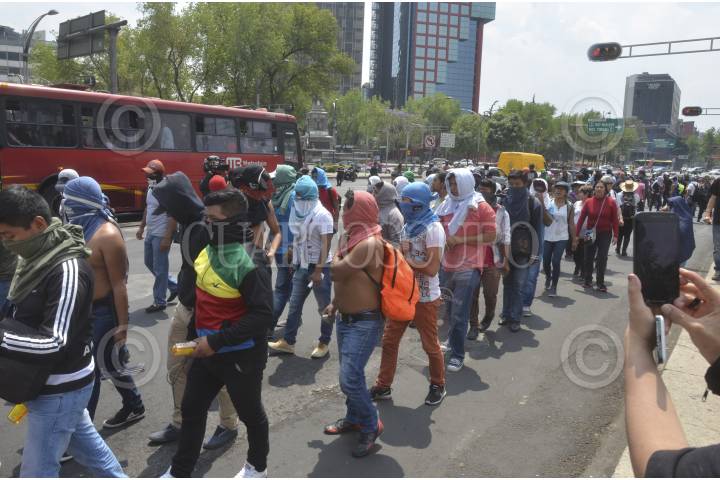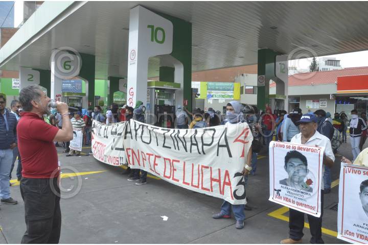 CIUDAD DE MÉXICO, 11MARZO2017.- La gasolinera Hidrosina ubicada en Paseo de la Reforma e Insurgentes, fue tomada por familiares de los 43 normalistas desaparecidos de Ayotzinapa, y estudiantes de la Normal Rural Raúl Isidro Burgos, los cuales regalaron combustible a los automovilistas, esto como parte de las protestas por la exigencia de justicia en el caso de sus hijos y compañeros víctimas de desaparición forzada. FOTO: ARMANDO MONROY /CUARTOSCURO.COM