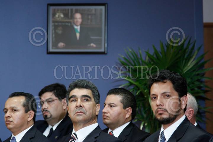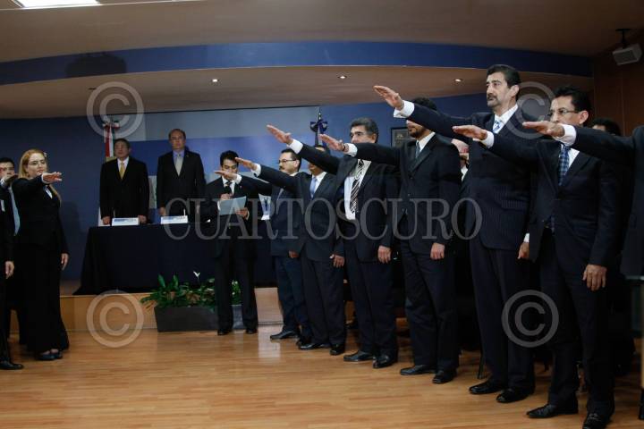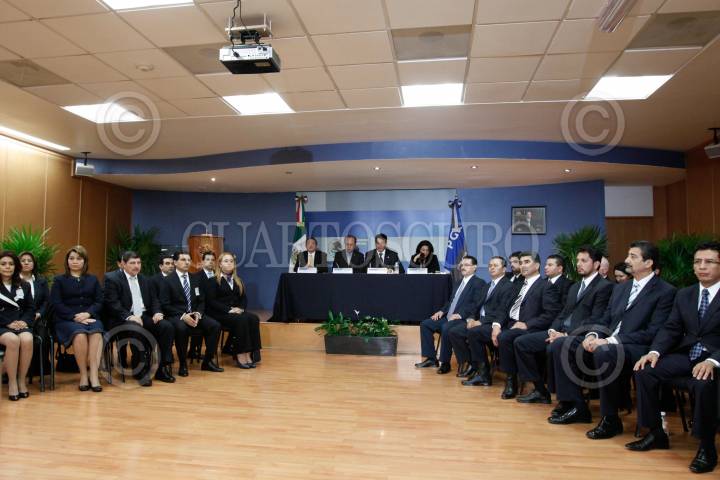 MÉXICO, D.F., 11AGOSTO2011.- José Enrique Girón, Luis Gárate, José Luis Cuitláhuac Salinas y Adriana Cuevas, tomaron protesta a los 24 nuevos delegados de la Procuraduría General de la República, PGR, 21 de los cuales cubrirán las plazas que dejaron vacantes igual número de funcionarios que renunciaron en forma masiva el pasado 21 de julio. FOTO: IVÁN STEPHENS/CUARTOSCURO.COM