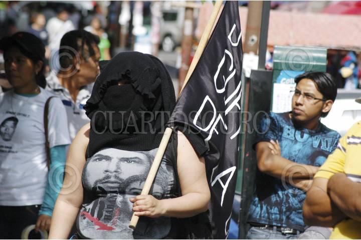 CHILPANCINGO, GUERRERO, 30DICIEMBRE2014.- Estudiantes de la normal de Ayotzinapa y padres de familia de estudiantes desaparecidos en Iguala el 26 y la madrugada del 27 de septiembre, tomaron la radiodifusora ABC radio ubicada en el Andador Zapata, en el centro de esta ciudad, actividad para informar a la sociedad que a tres meses de la desaparición de sus compañeros la PGR no ha dado resultado en la localización de sus 42 compañeros desaparecido. FOTO: JOSÉ I. HERNÁNDEZ /CUARTOSCURO.COM