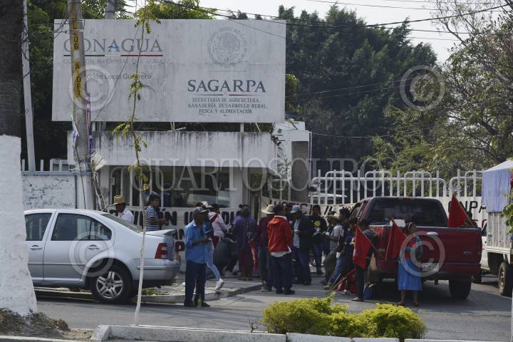 CHILPANCINGO, GUERRERO, 18ABRIL2017.- Campesinos que integran la Organización Popular Independiente de Guerrero (OPEG), y la Coordinadora Nacional Plan de Ayala, tomaron la delegación en Guerrero de la Sagarpa para exigir que aprueben sus proyectos productivos. FOTO: JOSÉ I. HERNÁNDEZ /CUARTOSCURO.COM