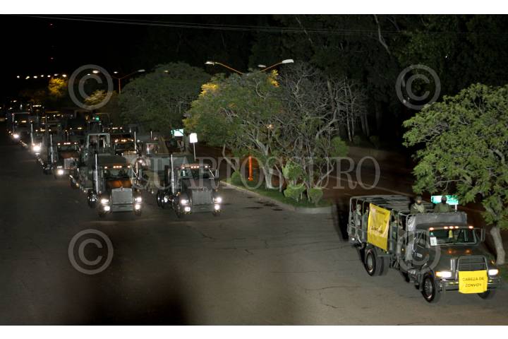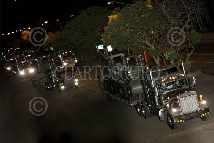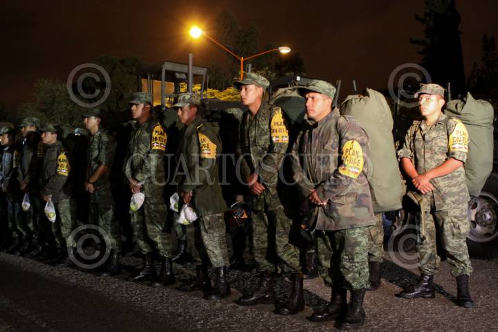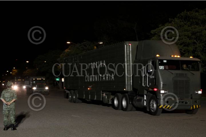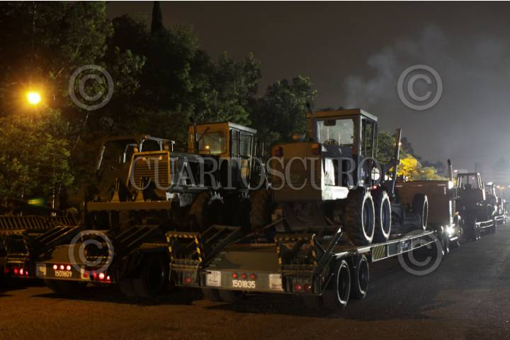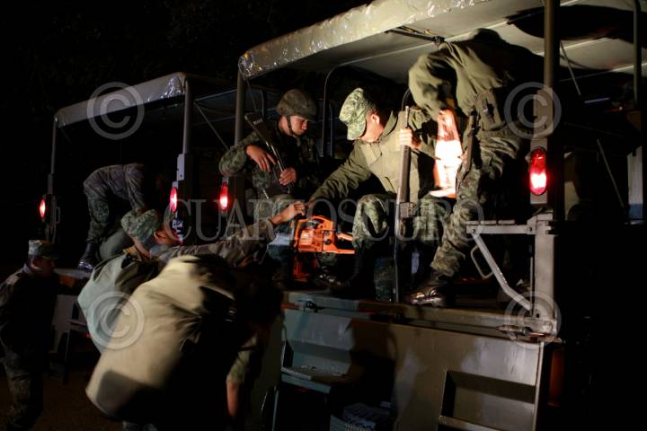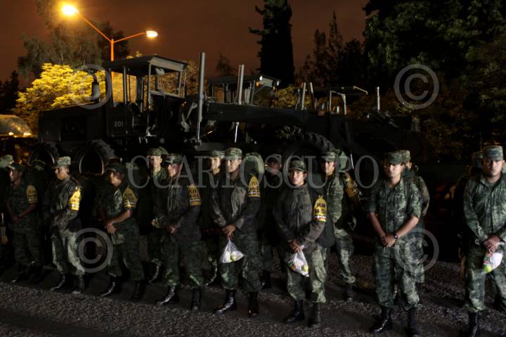 MÉXICO, D.F., 16JUNIO2010.- Elementos del Ejercito Mexicano de la Fuerza de Apoyo salieron esta madrugada del Campo Militar 1-A para apoyar para casos de desastre ante el inicio de la temporada de huracanes y como medida preventiva para reaccionar de manera oportuna para tomar acciones dirigidas a controlar el riesgo y evitar o mitigar el impacto destructivo de los desastres. Dichos elementos, materiales y equipo partieron rumbo a Vallalodid, Yucatan y hacia Tonalá, Chiapas, todo como parte del plan DN - III - E. FOTO: RODOLFO ANGULO/CUARTOSCURO.COM
