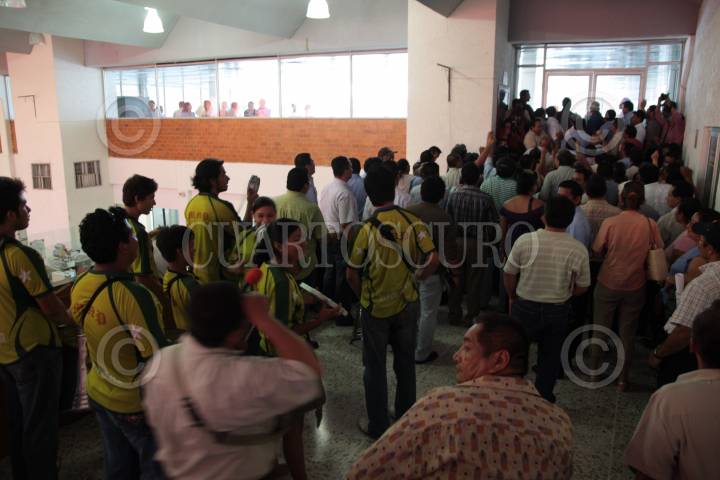 CHILPANCINGO, GUERRERO 23MAYO2009.- Alumnos de la normal rural de Ayotzinapa, tomaron las instalaciones del ex Ineban, para exigir a las autoridades solución a su pliego petitorio de demandas, dejando encerrados a varias personas que se encontraban realizando tramites y trabajadores que se encontraban en el interior del inmueble FOTO: OSCAR ALVARADO/CUARTOSCURO.COM