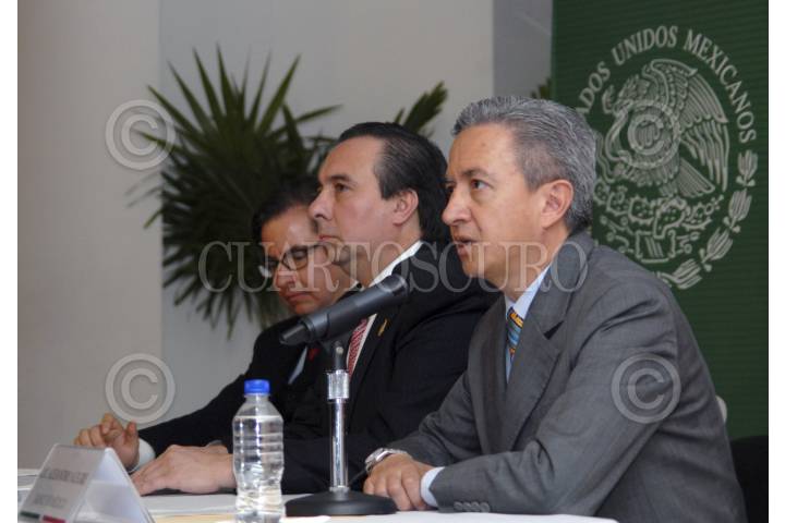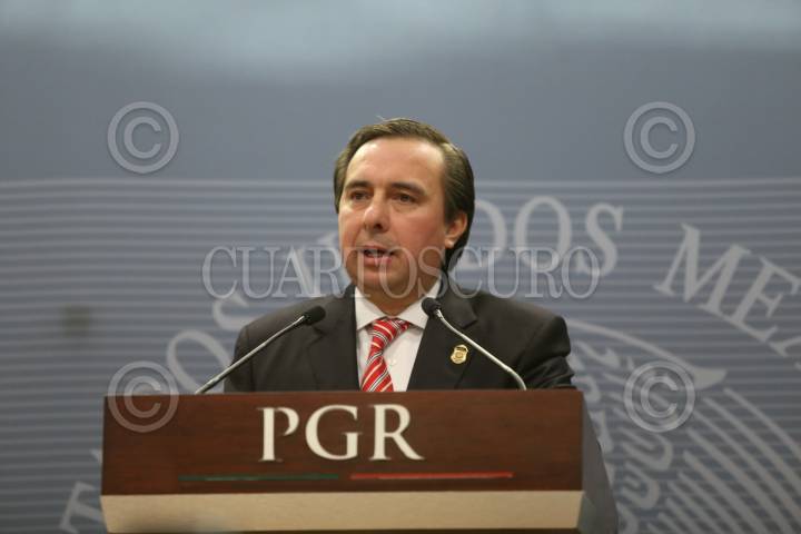 MÉXICO, D.F., 06OCTUBRE2014.- Jesús Muriilo Karam, Procurador General de la República, Tomás Zerón de Lucio, director de la Agencia de Investigación Criminal de la PGR, Eduardo Sánchez, vocero de la presidencia de la república y Rodrigo Archundia Barrientos, titular de la Subprocuraduría Especializada de Investigación en Delincuencia Organizada en conferencia dieron a conocer que el titular de la PGR encabezara al equipo de trabajo para esclarecer el ataque a normalistas en Iguala el pasado 26 de septiembre. FOTO: SAÚL LÓPEZ /CUARTOSCURO.COM