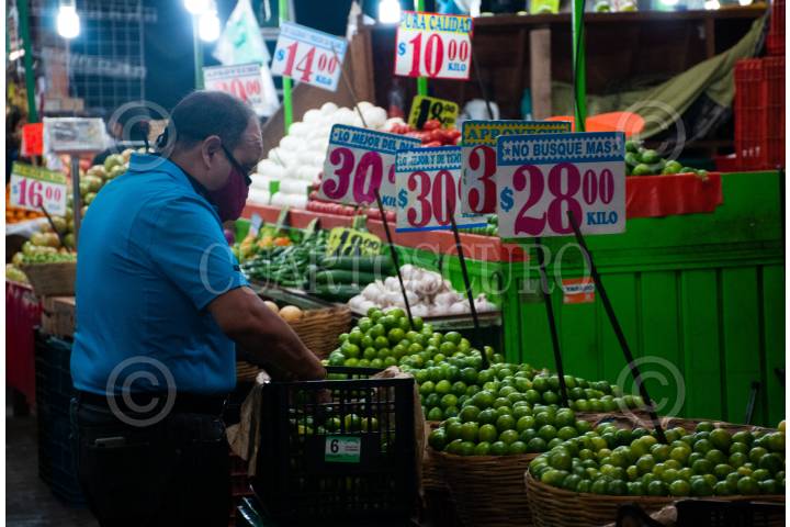 Un hombre coloca los limones dentro de su puesto en el Mercado Jamaica.