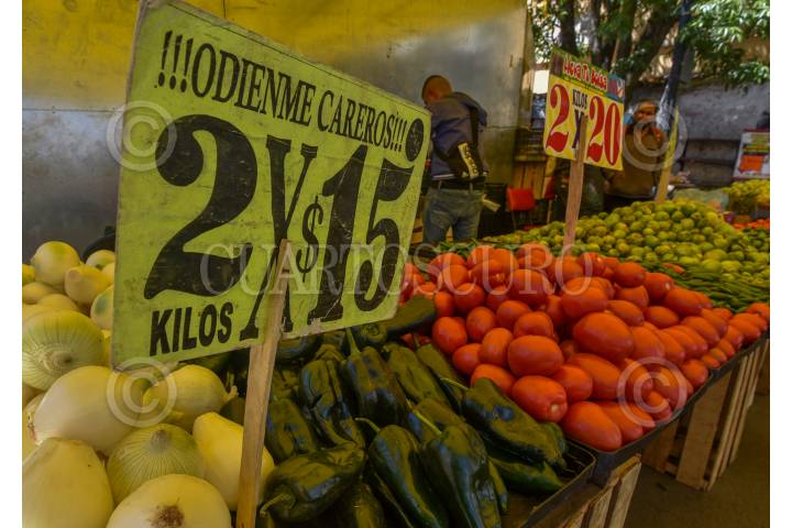 CIUDAD DE MÉXICO, 08AGOSTO2024.- Locatarios de la ciudad han reportado el incremento en los precios de la canasta básica en los últimos meses y aún mayor al terminar el mes de julio. Lo anterior, según cifras del Instituto Nacional de Estadística y Geografía (INEGI) se debe a la inflación general anual que se sitúa en 5.57%, un aumento del 1.05% respecto al mes de junio. Los productos con incremento son: jitomate, papa, aguacate, cebolla y el limón ha comenzado a subir. Por el contrario, el día de hoy la Junta de Gobierno del Banco de México decidió disminuir en 25 puntos base el objetivo para la tasa de interés Interbancaria a un nivel de 10.75 por ciento, sin embargo subieron su expectativa de inflación que colocan en un promedio de 4.4% para el último trimestre de este año, que es superior al 4% que proyectaron en el mes de junio.