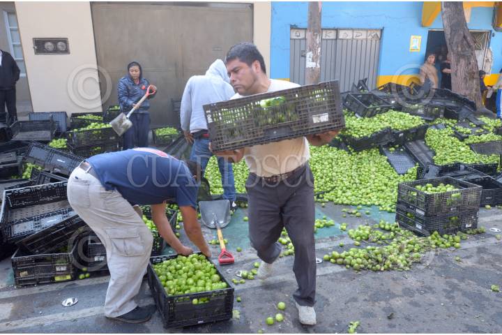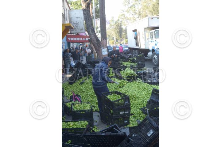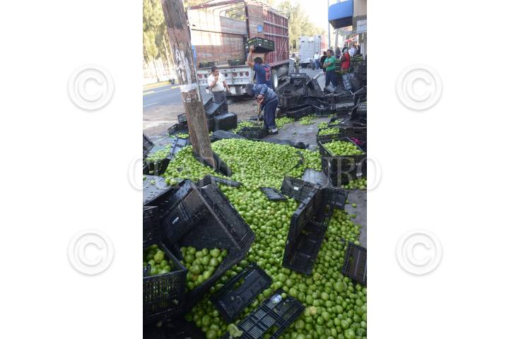MÉXICO, D.F., 25FEBRERO2015.- Un camión tortón que transportaba tomates se volcó en avenida Eduardo Molina y la calle 308, colonia Nueva Atzacualco. FOTO: ARMANDO MONROY /CUARTOSCURO.COM