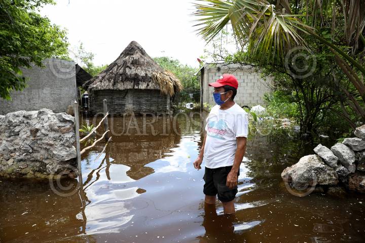 Casas de los pobladores del municipio de Ixil, Yucatán, se encuentran inundadas tras el paso de la tormenta tropical "Cristóbal".