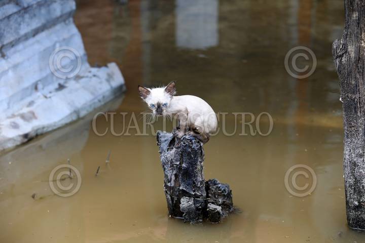 Los animales también sufren los estrago de las inundaciones en el municipio de Ixil, Yucatán, tras el paso de la tormenta tropical "Cristóbal".