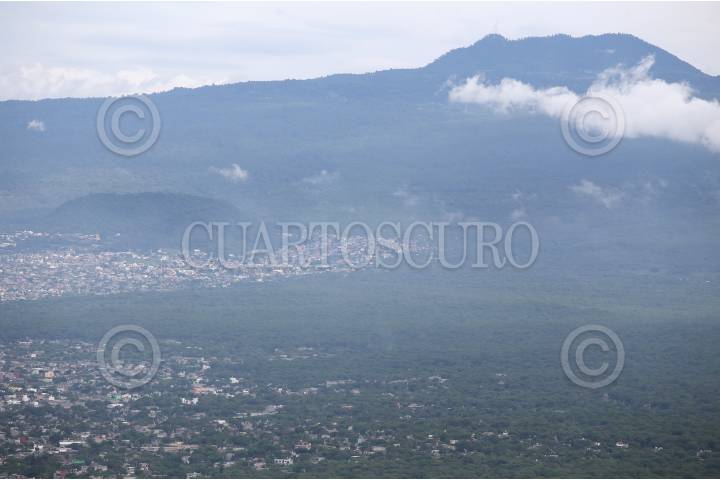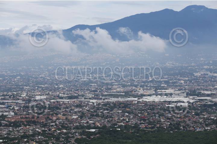 El clima en Morelos para este día se pronostica de nublado con lluvias por la tarde. Paisaje de la capital y la parte norte del estado desde el cerro de la Corona.