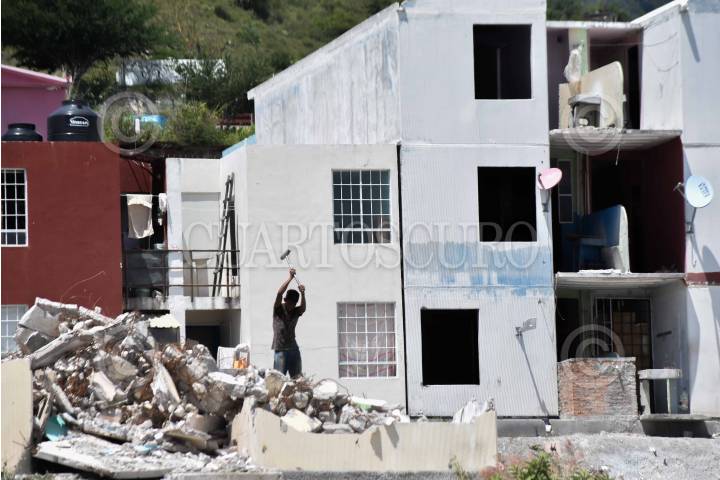 CHILPANCINGO, GUERRERO, 13SEPTIEMBRE2023.- A diez años de perder sus hogares por las lluvias de las tormentas Ingrid y Manuel, habitantes del fraccionamiento de damnificados 'Nuevo Mirador' han perdido de nueva cuenta sus viviendas presuntamente por negligencia gubernamental. La Secretaría del Bienestar anuncio la demolición de 150 viviendas de este lugar para ser reconstruidas por los daños estructurales que presentaban desde su edificación. Esperan que la re reconstrucción de sus hogares, por parte de la Federación, se concluya en el mes de diciembre. FOTO: DASSAEV TÉLLEZ ADAME/CUARTOSCURO.COM