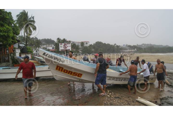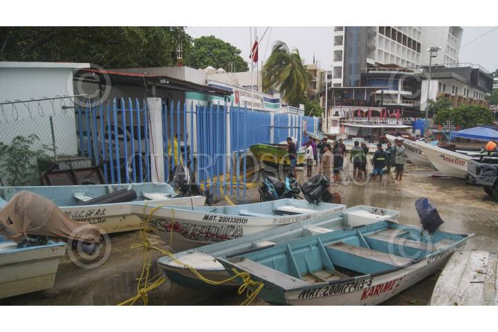 PUERTO ESCONDIDO, OAXACA, 23SEPTIEMBRE2024.- Lancheros, ciudadanos y turistas se encuentran en preparativos para la llegada del huracán John, el cual se espera entre por la tarde y provocará intensas lluvias. FOTO: NEMESIO MENDEZ/CUARTOSCURO.COM