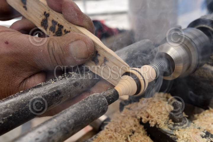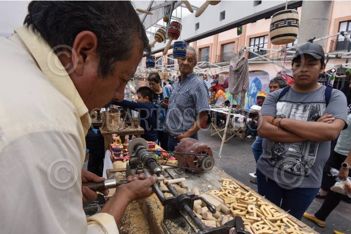 TOLUCA, ESTADO DE MÉXICO, 28JUNIO2019.- Antonio Torres San Juan, originario de San Antonio la Isla, lleva más de 25 años elaborando juguetes de madera en torno de diferentes tamaños, este oficio lo aprendió de su padre y su abuelo quienes se dedicaban a mi mismo, ahora el trata de difundir la elaboración de estas artesanías acudiendo a las ferias artesanales que se realizan en Toluca, mostrando su trabajo diario. FOTO: CRISANTA ESPINOSA AGUILAR /CUARTOSCURO.COM