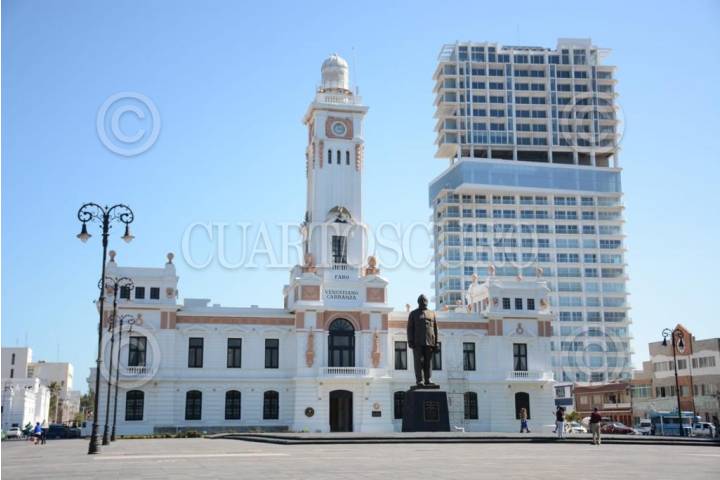 Andrés Manuel López Obrador, presidente de México, durante reunión en las instalaciones de Museo Naval de la entidad, sugirió detener las obras de construcción y de ser posible derrumbar pisos de la Torre Centro ya que de acuerdo al mandatario rompe con la imagen del Faro de Venustiano Carranza.