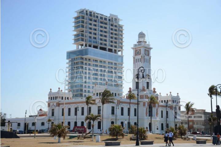 Aspectos de la Torre Centro en el Puerto de Veracruz, la cual ha sido señalada de actos ilegales en su construcción.
