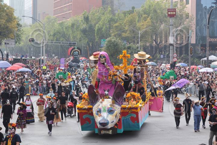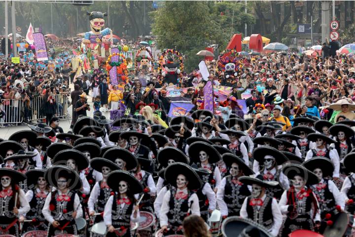 CIUDAD DE MÉXICO, 02NOVIEMBRE2024. Gran desfile de Día de Muertos 2024; este evento se lleva a cabo de manera anual desde el 2016 y recorre Paseo de la Reforma desde la Puerta de los Leones hasta el zócalo capitalino. Carros alegóricos, bailarines y muchas Catrinas amenizan la celebración de Día de Muertos. FOTO: EDGAR NEGRETE LIRA/CUARTOSCURO.COM