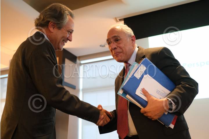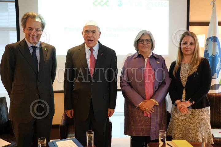 Antonio del Valle Perochena, presidente del Consejo Mexicano de Negocios (CMN), y José Ángel Gurría Treviño, secretario General de la Organización para la Cooperación y Desarrollo Económicos (OCDE) durante la presentación "Perspectivas Económicas".