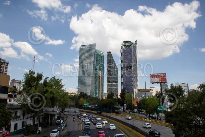 Cuatro de las torres más altas de México se concentran en avenida Reforma, a la altura del Circuito Interior. En la imagen se observa Torre Chapultepec Uno, Torre Mayor, Torre Reforma, y Torre BBVA.