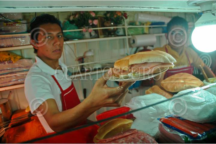 MÉXICO, D.F., 26JULIO2008.- Un joven prepara una tradicional torta en una clásica torteria en los alrededores del metro Chilpancingo, este alimento que es consumido tanto por hombres, mujeres, niños y todo tipo de gente, tanto mexicanos como extranjeros coloquialmente se dice que es la Vitamina T por ser parte también de los tacos y tamales y que es parte de la tradicional dieta del mexicano aunque a venido perdiendo popularidad en cuanto a otro tipo de alimentos como la hamburguesa. FOTO: RODOLFO ANGULO/CUARTOSCURO.COM