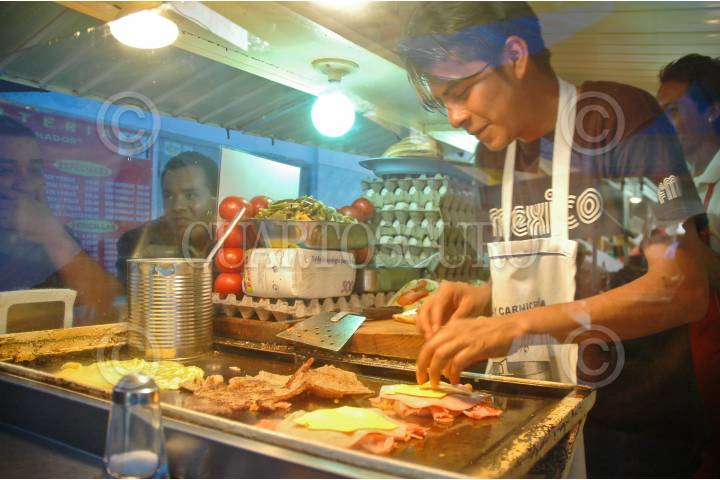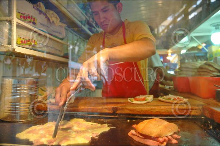 MÉXICO, D.F., 26JULIO2008.- Un joven prepara la tradicional torta cubana en una clásica torteria en los alrededores del metro Chilpancingo, este alimento que es consumido tanto por hombres, mujeres, niños y todo tipo de gente, tanto mexicanos como extranjeros coloquialmente se dice que es la Vitamina T por ser parte también de los tacos y tamales y que es parte de la tradicional dieta del mexicano aunque a venido perdiendo popularidad en cuanto a otro tipo de alimentos como la hamburguesa. FOTO: RODOLFO ANGULO/CUARTOSCURO.COM