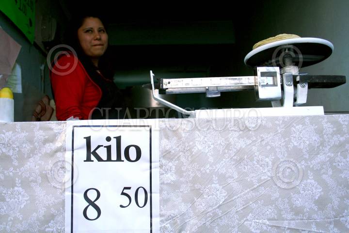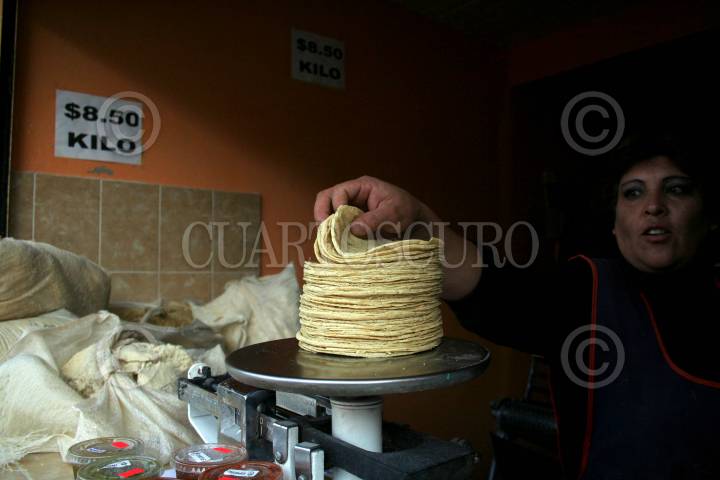 MÉXICO, D.F., 20ENERO2007.- Algunos establecimientos ya ofrecen el kilo de torilla en 8.50 pesos, luego de que el precio fuera pactado por el gobierno y productores. FOTO: ISAAC ESQUIVEL/CUARTOSCURO.COM